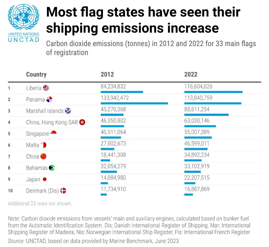 The top three flag states in terms of shipping emissions – Liberia, Panama, and the Marshall Islands – account for a third of maritime shipping’s carbon emissions, and are likely to be responsible for enforcing updated environmentally friendly operating standards.