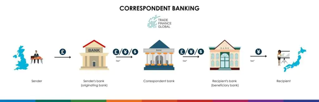 Correspondent banking involves a relationship between a correspondent bank and a respondent bank.